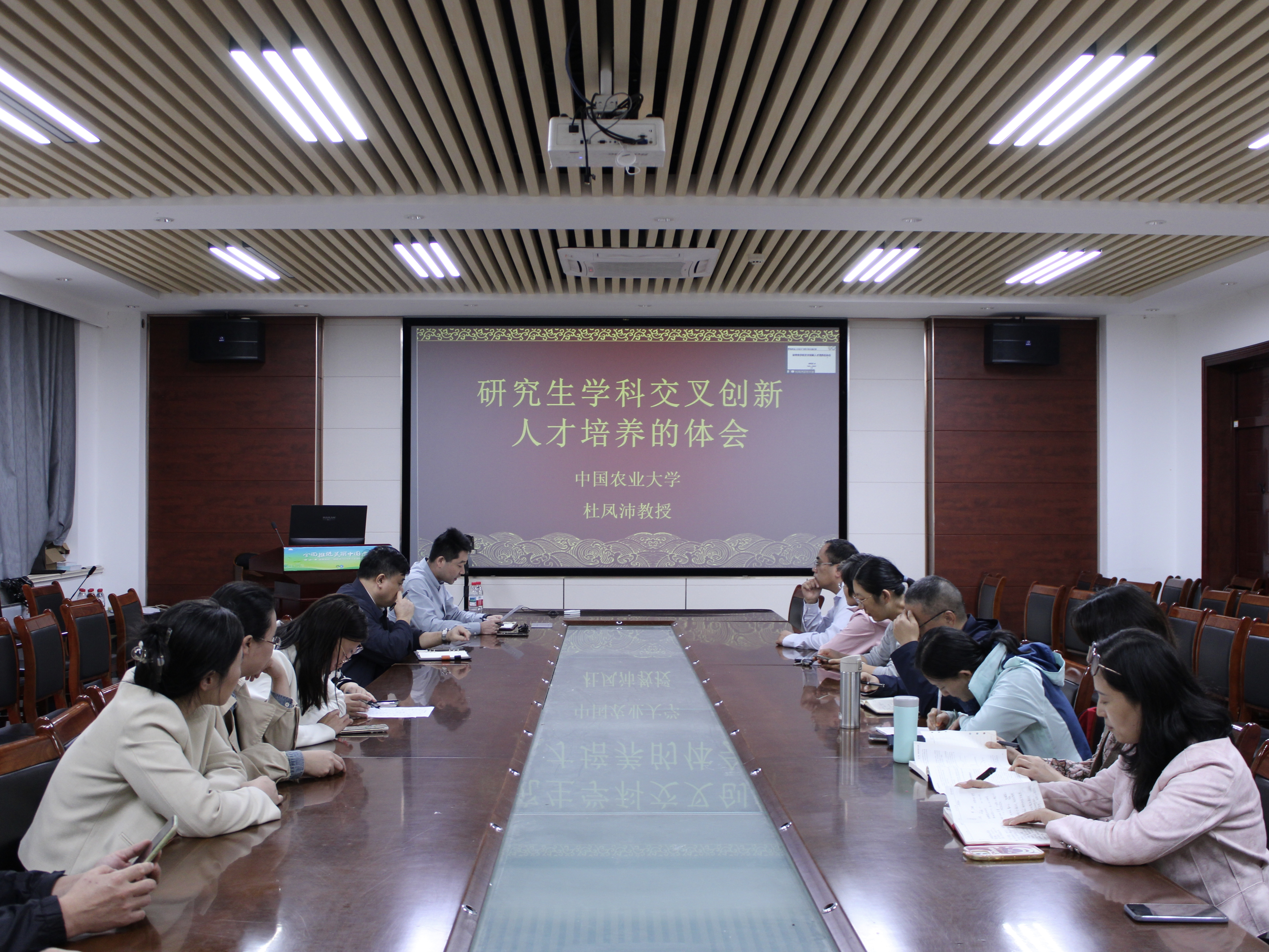 杜凤沛首先分析了高等学校教育教学面临的新形势与挑战,他指出,在新一轮科技革命与产业变革加速演进的背景下,培养兼具“爱农情怀”与“兴农本领”的拔尖创新人才和行业领军人才,是农业院校研究生培养的使命担当。随后,他结合自身多年教育教学与科研实践经验,围绕“研究生学科交叉创新人才培养的研究与实践”展开系统讲解,通过具体实例拆解学科交叉育人的实施路径,同时向参会导师提出以下建议:一是持续提升自身能力,以高尚人格魅力与师德风范为基石,做学生为学、为事、为人的大先生;二是夯实学生基础学科功底,重视基础研究源头价值,培养学生独立批判性思维,拓宽学术成长空间;三是精准聚焦选题,以“四个面向”为指引,坚持场景与问题导向,聚焦前沿、立足需求,挖掘涉农领域化学科学命题。分享结束后,参会导师围绕关切议题展开交流探讨。