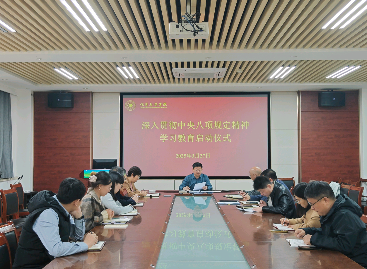 为强化党员身份意识与责任意识,提升党组织的凝聚力和战斗力,3月27日,学院于化学楼207召开深入贯彻中央八项规定精神学习教育启动仪式,学院党委书记王进国主持,学院各党支部书记、委员参加。