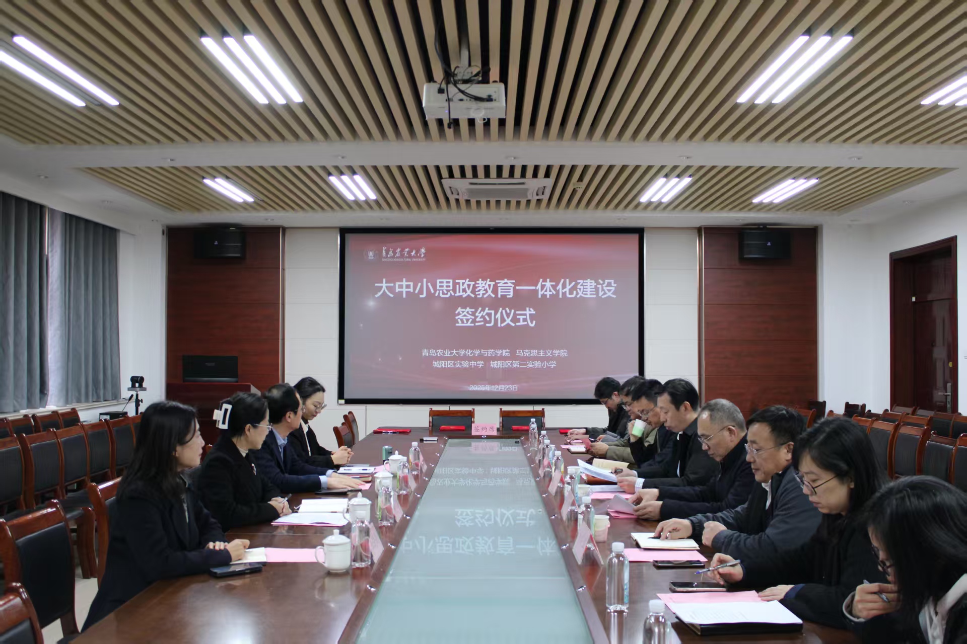 为深入贯彻落实习近平总书记在全国教育大会上的重要讲话精神,聚焦落实新时代立德树人工程,12月23日下午,大中小学思政教育一体化建设签约仪式在77779193永利官网,永利集团官网会议室顺利举行。此次签约标志着学校与城阳区实验中学、城阳区第二实验小学在思政教育协同育人方面开启机制化、常态化合作新篇章。