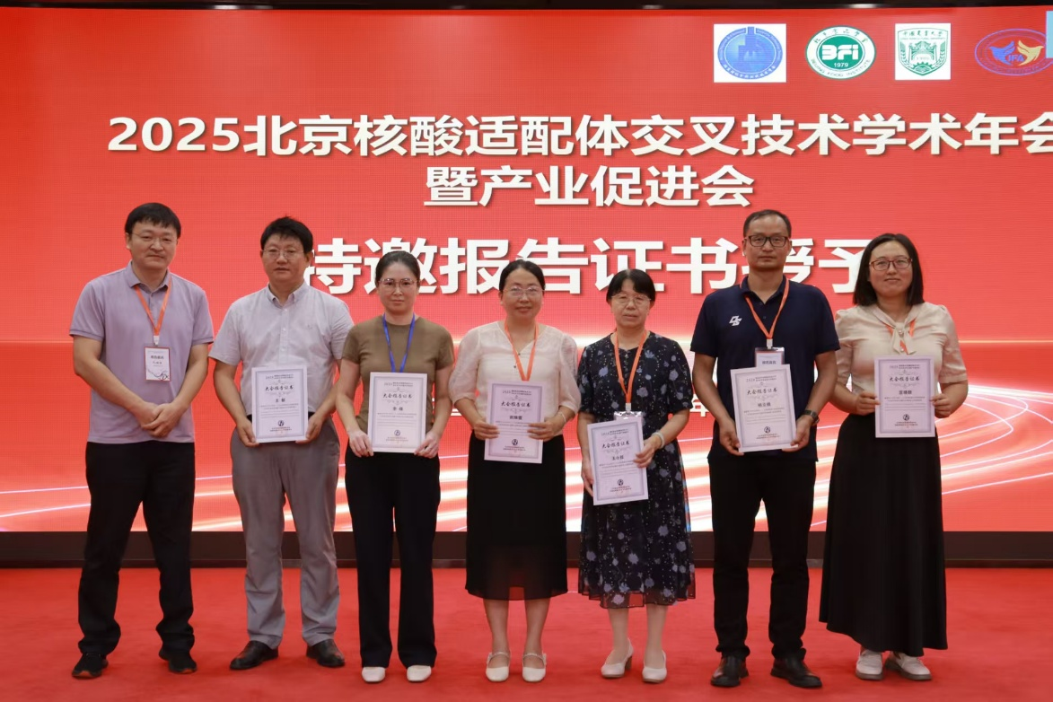 第四届北京核酸适配体交叉技术学术年会暨产业促进会于2025年8月1日至4日在北京召开。会议旨在共同探讨核酸适配体的研究和应用、机遇与挑战,以加强核酸适配体相关研究人员的交流协作,共同推动核酸适配体研究与应用的深入发展。课题组李峰教授和杨立敏教授参加,李峰教授作题为《基于核酸适配体的肿瘤标志物均相光电传感新方法》的报告。